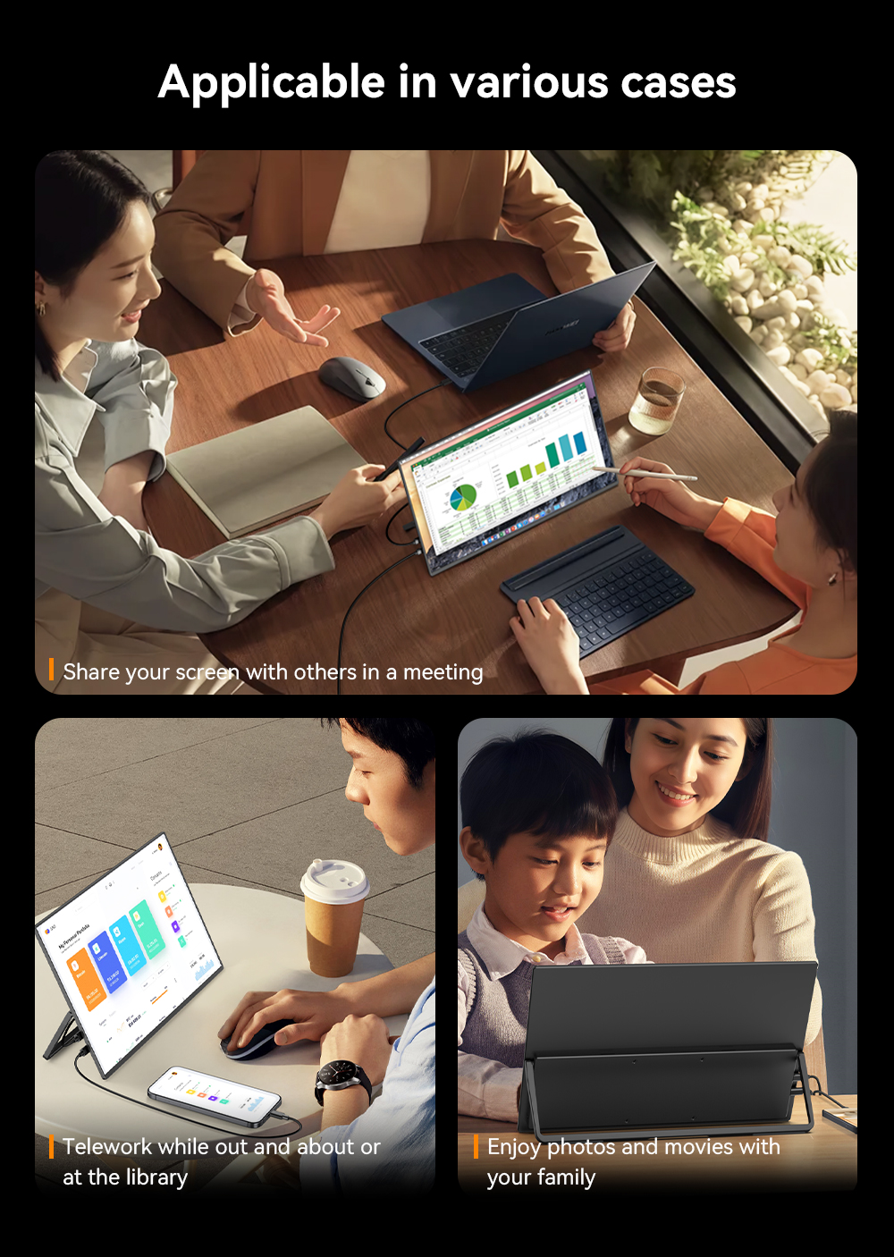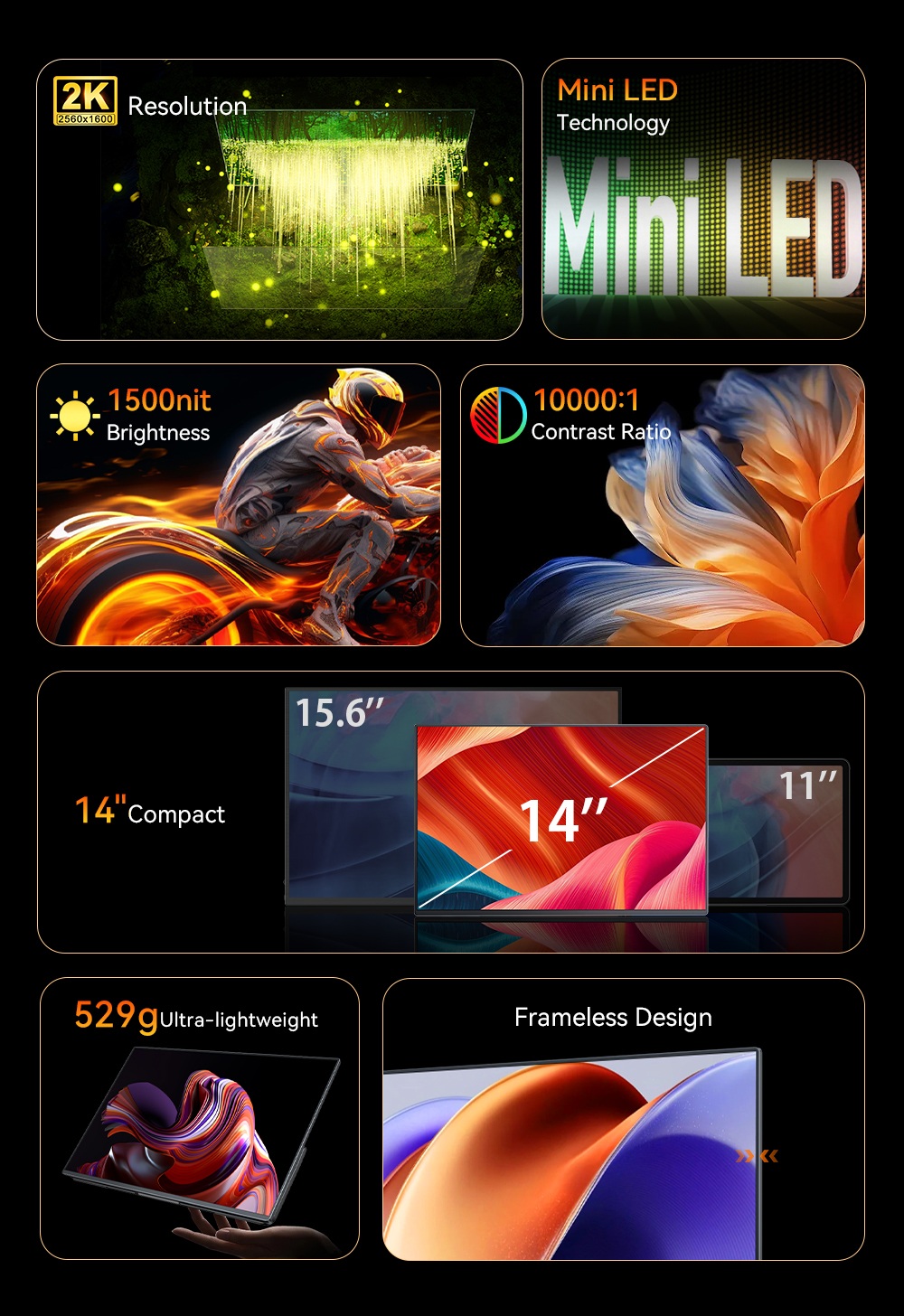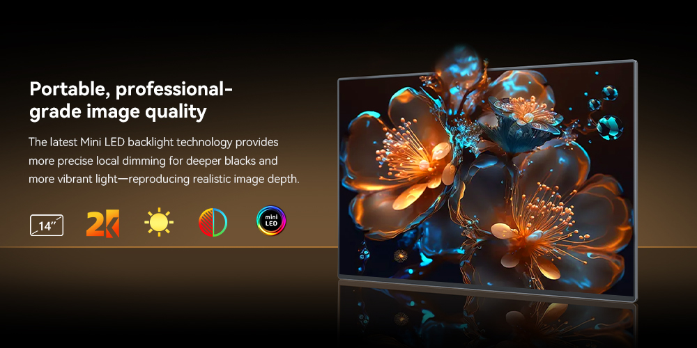 Uperfect Ucolor M1 — это 14-дюймовый портативный монитор, который станет идеальным дополнением к вашему ноутбуку или игровой консоли. Модель Ucolor M1 оснащена ярким 2K-экраном с разрешением 2560x1600 и Mini-LED подсветкой, обеспечивающей высокую контрастность и насыщенные цвета. Частота обновления 60 Гц гарантирует плавное изображение, а матовая поверхность экрана минимизирует блики. Монитор оснащен встроенными динамиками, выходом на наушники и удобной подставкой. Uperfect Ucolor M1 подключается к различным устройствам благодаря портам USB Type-C, mini-HDMI и mini-Jack.